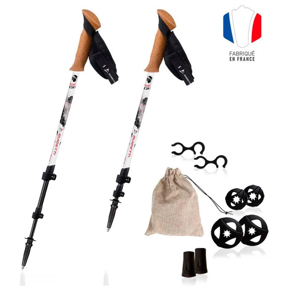 Ces bâtons de randonnée sont vendus par paire et accompagnés de deux types de rondelles (été et hiver) pour s’adapter à tous les types de terrain et de conditions météo. Les rondelles hiver ont un diamètre plus large et permettent une marche facile dans la neige poudreuse tout en améliorant la portance des bâtons. La souplesse de la rondelle assure une adhérence optimale en s’adaptant à l’inclinaison du terrain. Quant aux rondelles été, elles sont recommandées pour les terrains accidentés, elles empêchent le bâton de se coincer ou de se casser en s’enfonçant dans une fissure ou entre les cailloux.