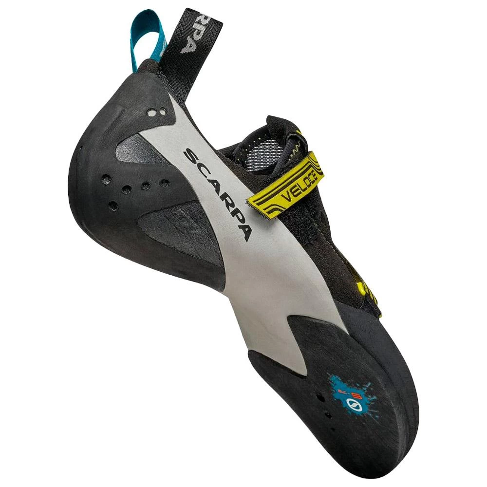 Le Scarpa Veloce est un chausson développé spécialement pour l’escalade en intérieur et profitant d’un confort travaillé qui sera particulièrement appréciable pour les grimpeurs débutants à intermédiaires et pour les longues séances de bloc à la salle. L’asymétrie est légère et la griffe moyennement prononcée. Il y a de la place pour les orteils et le système PAF réduit la pression aux orteils. La contrepointe rend possible les crochetages, la semelle externe S-72 apporte une bonne adhérence tout en restant bien durable.