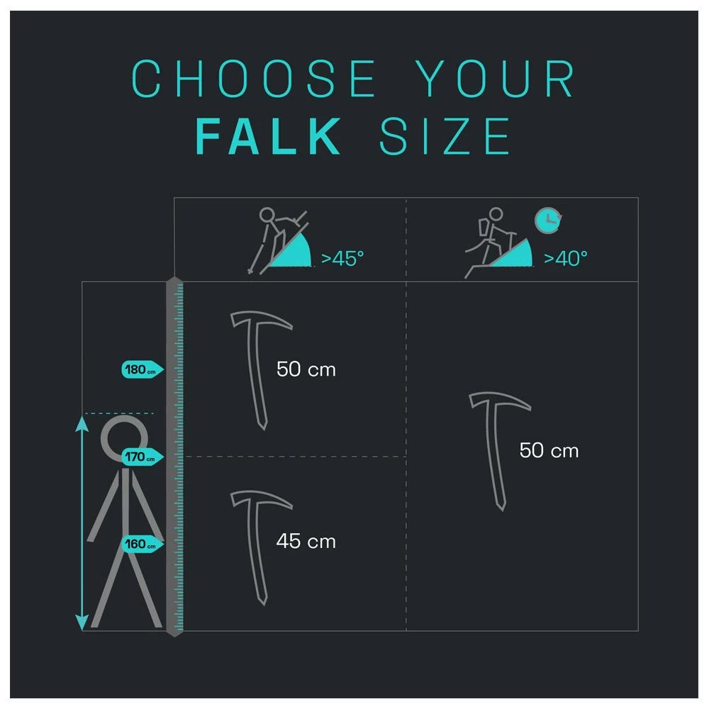 Blue Ice conserve cette volonté de faire des piolets techniques, même en entrée de gamme. Le Falk est un modèle très léger et robuste. Il intègre une poignée bi-texturée qui reste bien en main avec un ergo amovible pour les petites ascensions sur glace. La pointe en acier Chromoly très résistante assure une excellente capacité de pénétration. Ici en version panne, l’arrière de la tête vous permet de creuser. Des protections pour les pointes sont également incluses avec ce modèle.