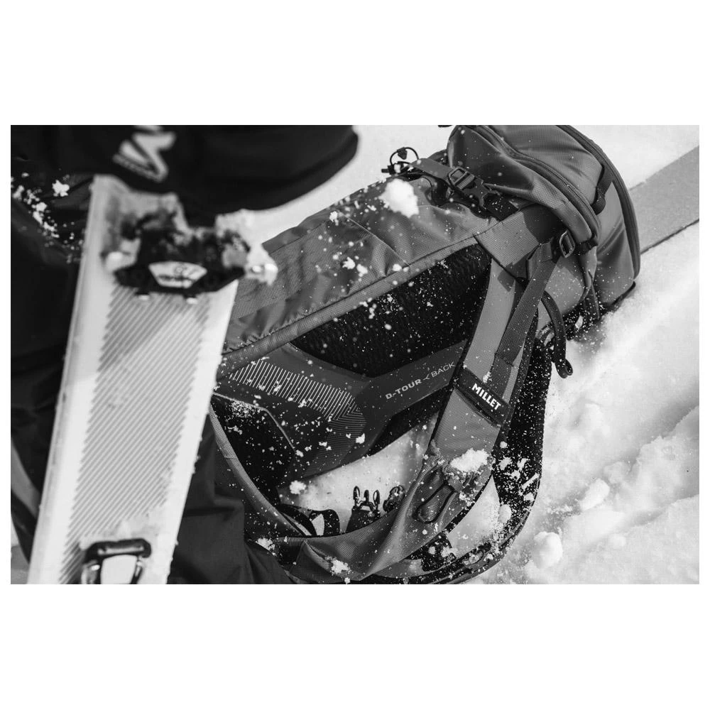 Le D-Tour 30 dispose également de compartiments pour l’équipement de sécurité, pour les objets de valeurs, le masque de ski ou encore pour le système d’hydratation. Deux attaches permettent d’accrocher un piolet chacune, et deux autres permettent d’accrocher les skis sur le côté ou en diagonale. Les bretelles ergonomiques intègrent des rappels de charge pour ajuster la position du sac sur le dos et la ceinture abdominale améliore le confort en répartissant le poids sur les hanches.