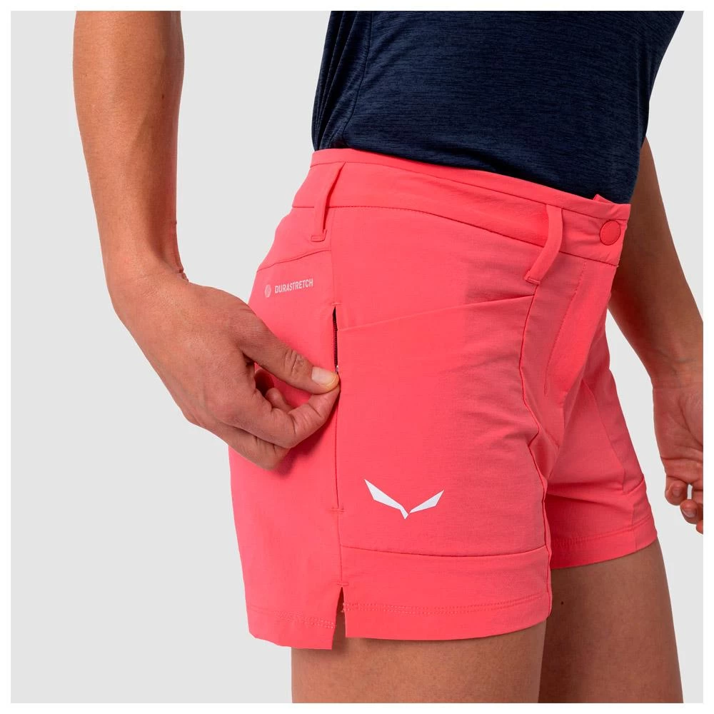 Le short de randonnée pour femme Salewa Puez Durastretch est un modèle minimaliste qui offre les garanties d’un confort optimal. Sa construction stretch accompagne les mouvements sans contrainte, tandis que son tissu léger et respirant joue parfaitement son rôle de régulateur thermique. Résistant à l’abrasion, il est également doté d’un traitement déperlant durable sans PFC qui le rend particulièrement durable. Le côté pratique n’a pas été négligé car ce short dispose d’une poche latérale zippée, ainsi que de deux poches avant plates pour ranger vos petits accessoires.